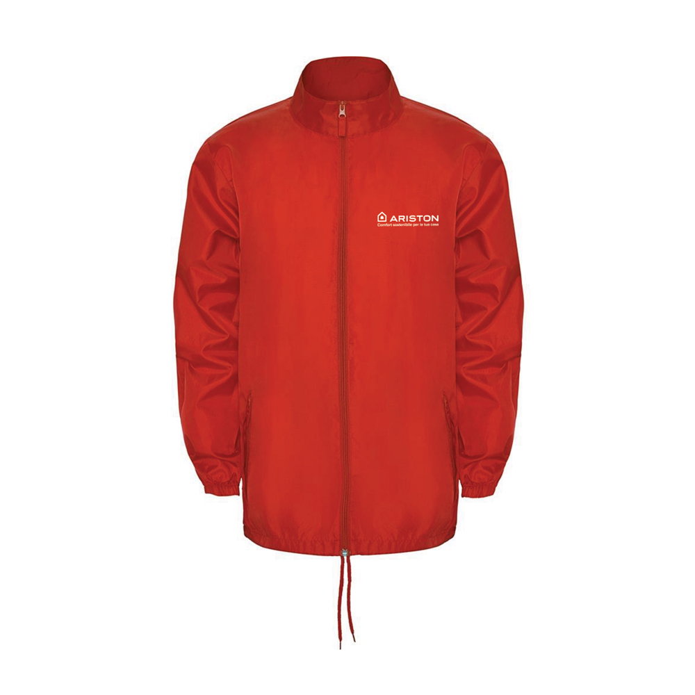 Impermeabile collo alto con cerniera lunga. Cappuccio ripiegabile a scomparsa nel colletto con cordoncini. Due tasche con copritasca e cerniera. Polsini elastici. Girovita con cordoncini regolabili e stopper. Elastico all’interno della tasca per poterlo ripiegare e conservare. Resistente all’acqua.