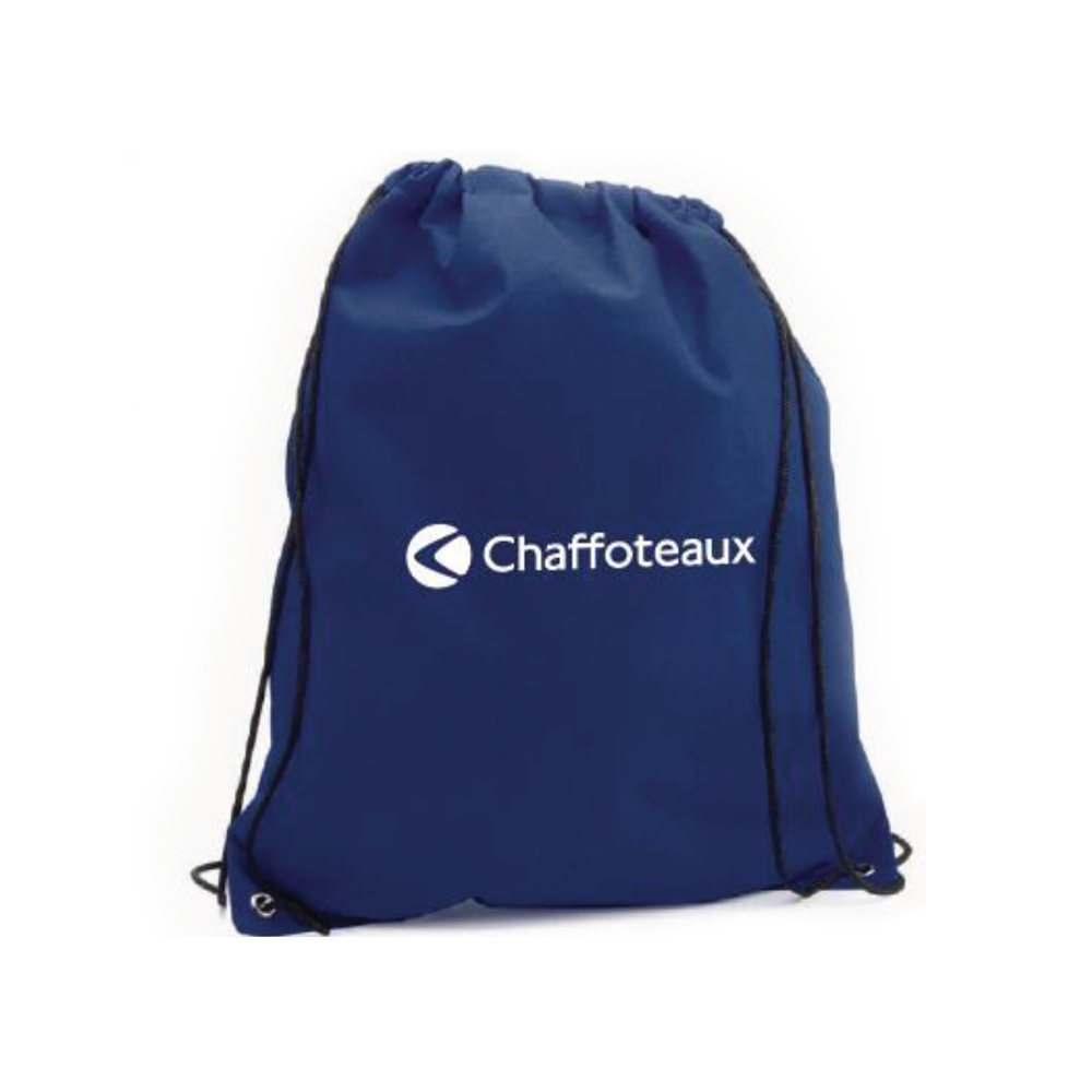 Sacca zaino in TNT, disponibile in vari colori. Con chiusura con coulisse nera e occhielli metallici di rinforzo sugli angoli
