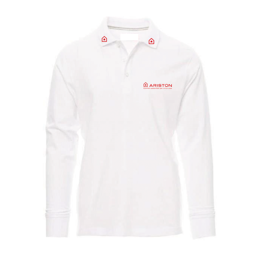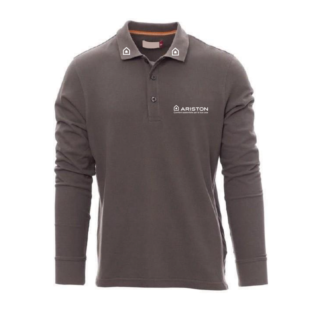 Polo da uomo a manica lunga con 3 bottoni in tinta effetto perlato,colletto e polsino a costine, spacchetti laterali, cuciture del collo coperte con nastro in tinta, cuciture stretch, nastro di rinforzo laterale.